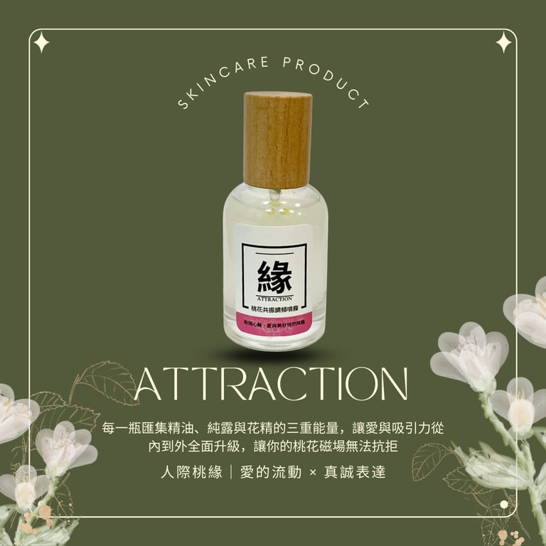 • 每一瓶匯集精油、純露與花精的三重能量,讓愛與吸引力從內到外全面升級,讓你的桃花磁場無法抗拒。